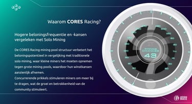 De missie van CORES Racing is om het oorspronkelijke concept van Bitcoin en solo miners die strijden om blokken te delven en te winnen nieuw leven in te blazen.